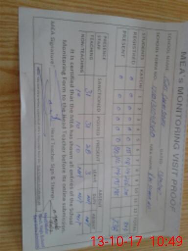 | Attendance Register | Head Teacher | MEA with School | Visit Proof |