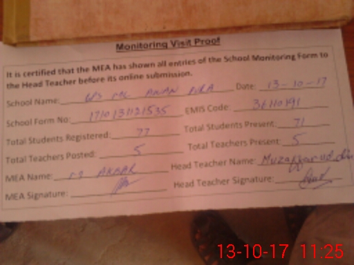 | Attendance Register | Head Teacher | MEA with School | Visit Proof |