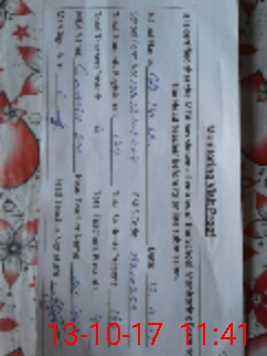 | Monitoring Date: 13-10-2017 | Start Time: 13-10-2017 11:19 AM | End Time: 13-10-2017 11:41 AM | Name of MEA: Ch**** Di**** | |