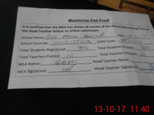 | Attendance Register | Head Teacher | MEA with School | Visit Proof |