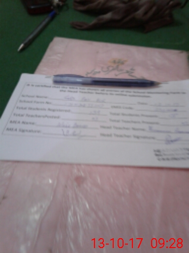| Certified that this School was Inspected by the Undersigned MEA/DMO Today and the Information Stated Above is as Per Record. | |||||