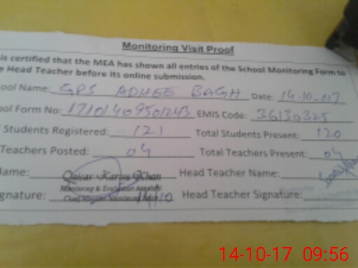 | EMIS Code: 36130325 | Name of School: GPS ADHI BAGH MOZA TARAGARH P/O KHOKHAR | |||