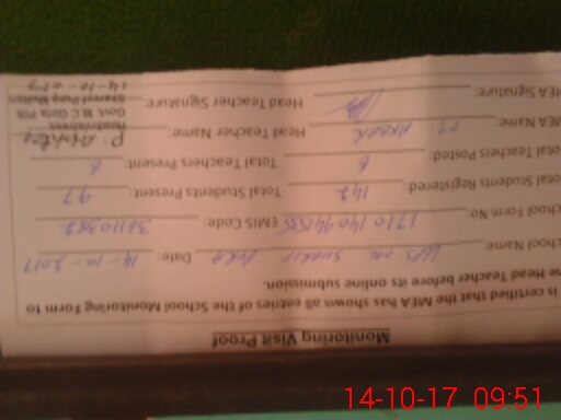 | Certified that this School was Inspected by the Undersigned MEA/DMO Today and the Information Stated Above is as Per Record. | |||||