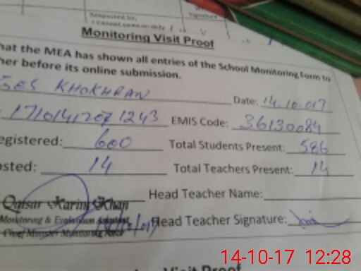 | Certified that this School was Inspected by the Undersigned MEA/DMO Today and the Information Stated Above is as Per Record. | |||||