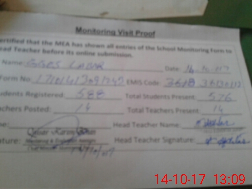 | Certified that this School was Inspected by the Undersigned MEA/DMO Today and the Information Stated Above is as Per Record. | |||||