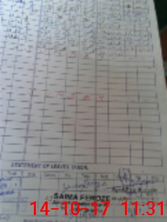 | CNIC | Full Name | Designation | R/C | Absence During Last Calender Month |