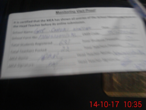 | Attendance Register | Head Teacher | MEA with School | Visit Proof |