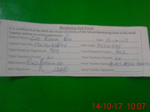 | EMIS Code: 39310995 | Name of School: GHS RUKAN PURA | |||