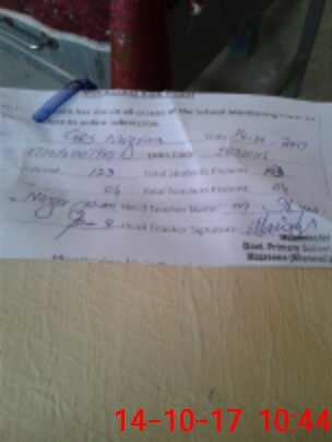 | Attendance Register | Head Teacher | MEA with School | Visit Proof |