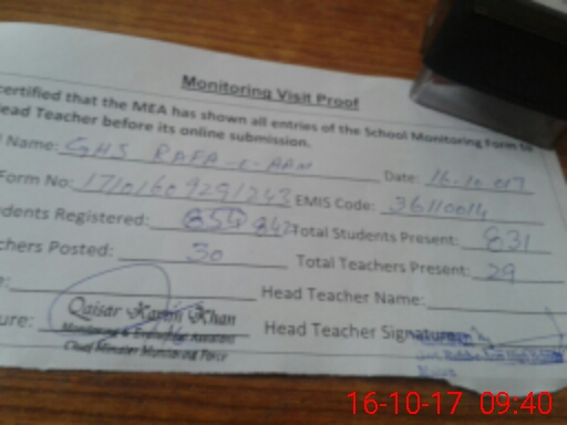 | Certified that this School was Inspected by the Undersigned MEA/DMO Today and the Information Stated Above is as Per Record. | |||||