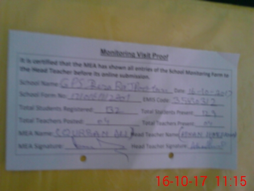 | Certified that this School was Inspected by the Undersigned MEA/DMO Today and the Information Stated Above is as Per Record. | |||||