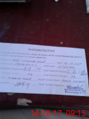 | Attendance Register | Head Teacher | MEA with School | Visit Proof |