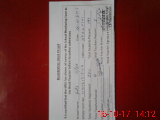 | Attendance Register | Head Teacher | MEA with School | Visit Proof |