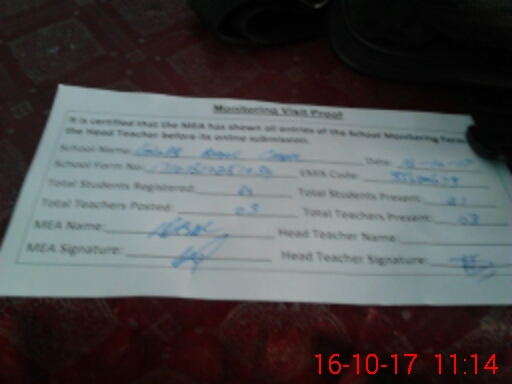 | Certified that this School was Inspected by the Undersigned MEA/DMO Today and the Information Stated Above is as Per Record. | |||||