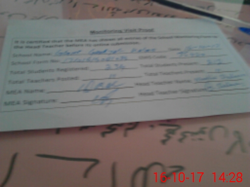 | Attendance Register | Head Teacher | MEA with School | Visit Proof |