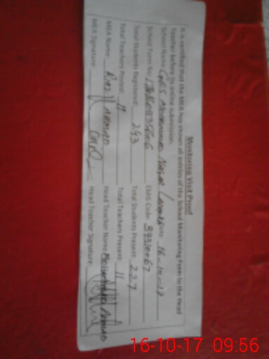 | Certified that this School was Inspected by the Undersigned MEA/DMO Today and the Information Stated Above is as Per Record. | |||||