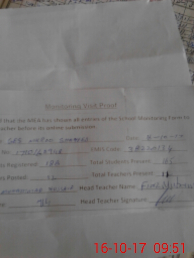 | Certified that this School was Inspected by the Undersigned MEA/DMO Today and the Information Stated Above is as Per Record. | |||||