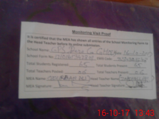 | Certified that this School was Inspected by the Undersigned MEA/DMO Today and the Information Stated Above is as Per Record. | |||||