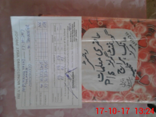 | School Visited by School Health & Nutrition Supervisor (No. of Visits) | Name1: | M IMRAN KHAN | Name2: | ||