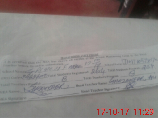 | Attendance Register | Head Teacher | MEA with School | Visit Proof |