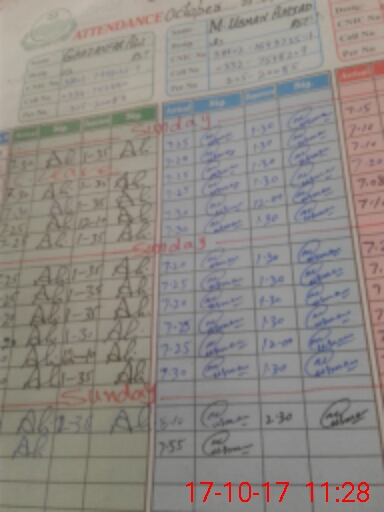 | CNIC | Full Name | Designation | R/C | Absence During Last Calender Month |