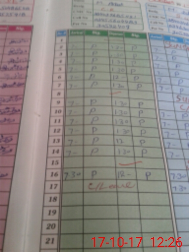 | 38**** | MAK**** | CHOWKI DAR | Regular | 1 | 0 | 0 | 0 | 0 | 0 | 0 | 0 | 1 | Casual |