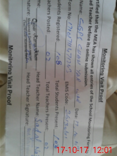 | Certified that this School was Inspected by the Undersigned MEA/DMO Today and the Information Stated Above is as Per Record. | |||||