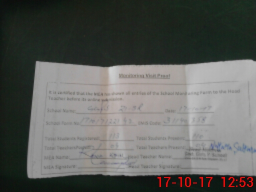 | Attendance Register | Head Teacher | MEA with School | Visit Proof |