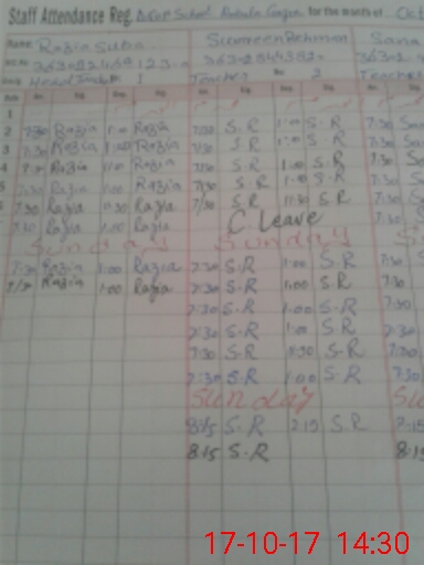 | CNIC | Full Name | Designation | R/C | Absence During Last Calender Month |