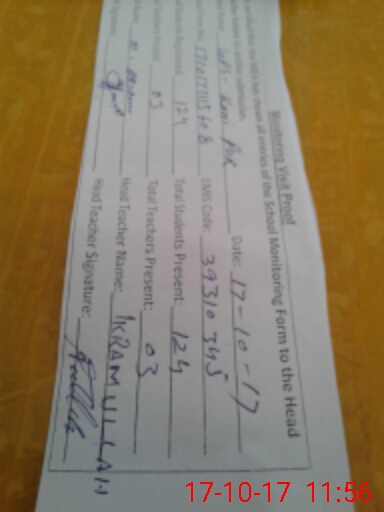 | Certified that this School was Inspected by the Undersigned MEA/DMO Today and the Information Stated Above is as Per Record. | |||||