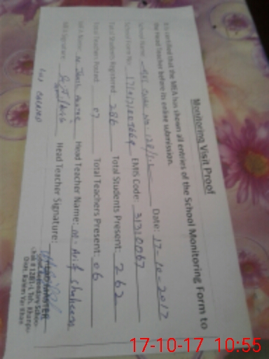 | Attendance Register | Head Teacher | MEA with School | Visit Proof |