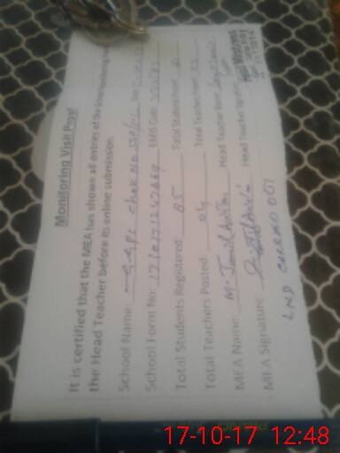 | Certified that this School was Inspected by the Undersigned MEA/DMO Today and the Information Stated Above is as Per Record. | |||||