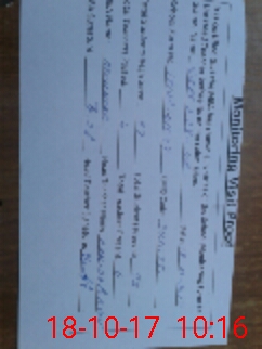 | Monitoring Date: 18-10-2017 | Start Time: 18-10-2017 09:37 AM | End Time: 18-10-2017 10:21 AM | Name of MEA: Mu**** ah**** BN**** 29 | |