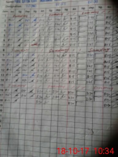 | Monitoring Date: 18-10-2017 | Start Time: 18-10-2017 10:20 AM | End Time: 18-10-2017 10:37 AM | Name of MEA: MU**** YO**** (R**** | |