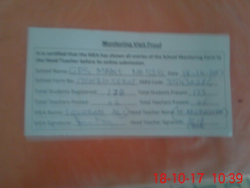 | Attendance Register | Head Teacher | MEA with School | Visit Proof |