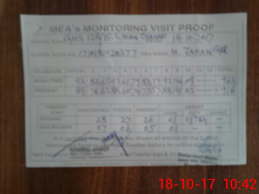 | EMIS Code: 36430015 | Name of School: GHS 128/15-L, MIAN CHANNU | |||