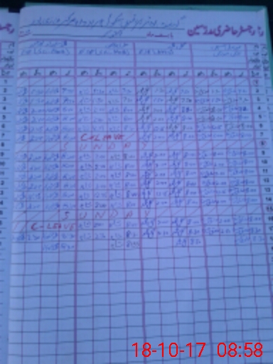| CNIC | Full Name | Designation | R/C | Absence During Last Calender Month |