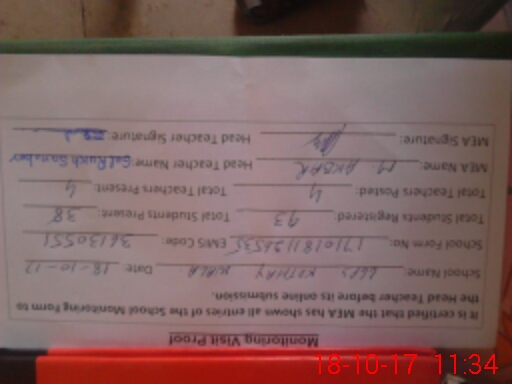 | Attendance Register | Head Teacher | MEA with School | Visit Proof |