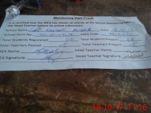 | Attendance Register | Head Teacher | MEA with School | Visit Proof |