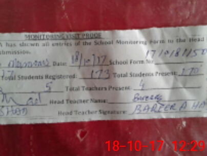 | Attendance Register | Head Teacher | MEA with School | Visit Proof |