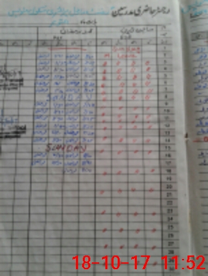 | CNIC | Full Name | Designation | R/C | Absence During Last Calender Month |