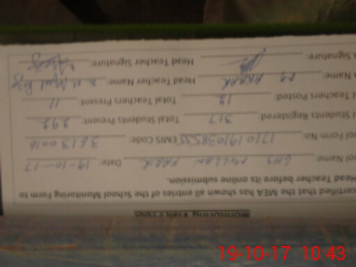 | Name: Mu**** Zu**** Designation: (School Headmaster's/Headmistress's) HEAD MASTER Phone/Cell Number: 03**** |