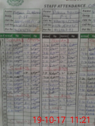 | CNIC | Full Name | Designation | R/C | Absence During Last Calender Month |