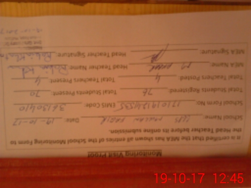 | Attendance Register | Head Teacher | MEA with School | Visit Proof |