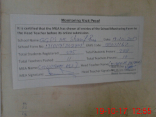 | EMIS Code: 35431162 | Name of School: GGPS MC SHARIF PURA | |||