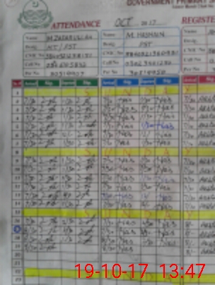 | CNIC | Full Name | Designation | R/C | Absence During Last Calender Month |