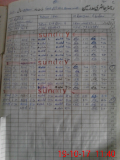 | CNIC | Full Name | Designation | R/C | Absence During Last Calender Month |