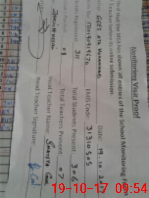| Attendance Register | Head Teacher | MEA with School | Visit Proof |