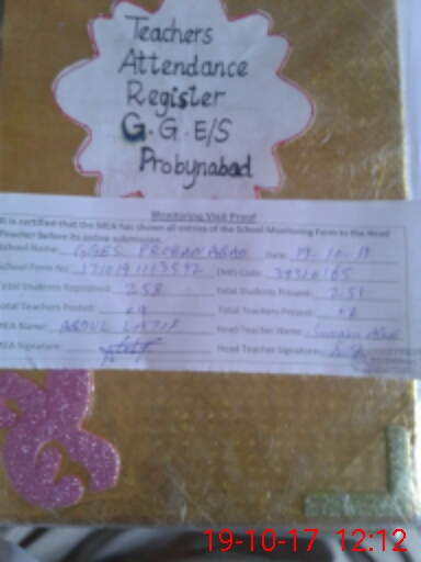 | Attendance Register | Head Teacher | MEA with School | Visit Proof |