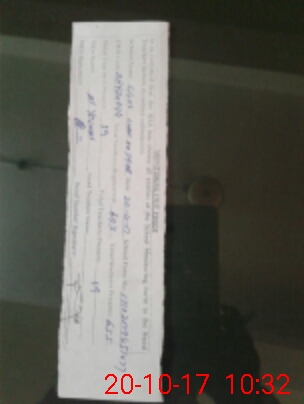 | Monitoring Date: 20-10-2017 | Start Time: 20-10-2017 09:01 AM | End Time: 20-10-2017 10:41 AM | Name of MEA: MU**** YO**** | |
